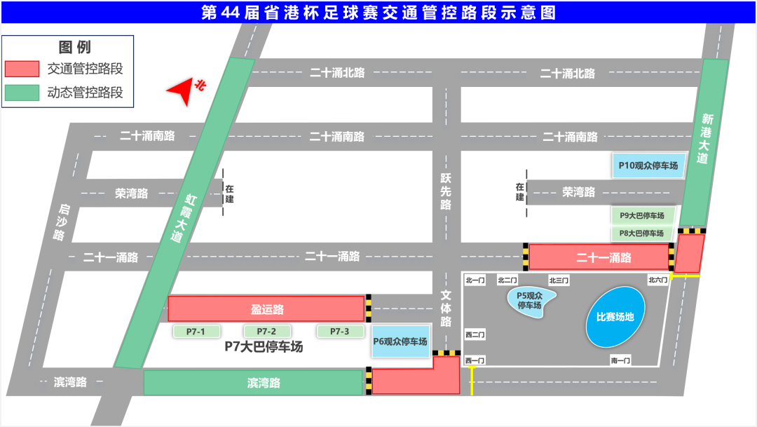 虹霞大道、新港大道、滨湾路等路段将实施动态交通管控。