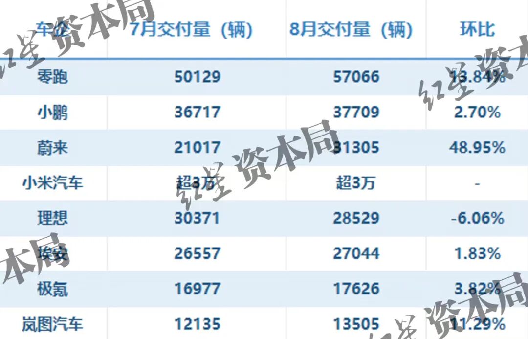 红星资本局9月1日消息,造车新势力陆续公布8月销售成绩。小米汽车连续第二个月交付超3万辆。小鹏汽车(09868.HK/XPEV.US)交付3.77万辆,零跑汽车(09863.HK)交付5.7万辆,蔚来(09866.HK/XPEV.US)交付超3万辆配资平台查询官网,均创历史新高。乐道L90首个完整交付月交付破万辆。